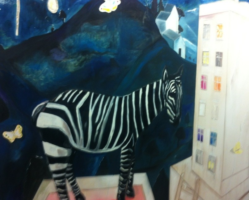 The picture at the top of this piece is Zebra Boogie Woogie – the Country and the City, by Emrys Williams and is yours for £1,500.