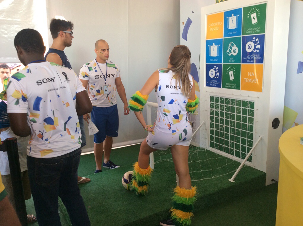 Queue for ten minutes. Kick ball at target, see if you win a prize. Technology from the 70s recycled for 21st century mugs.