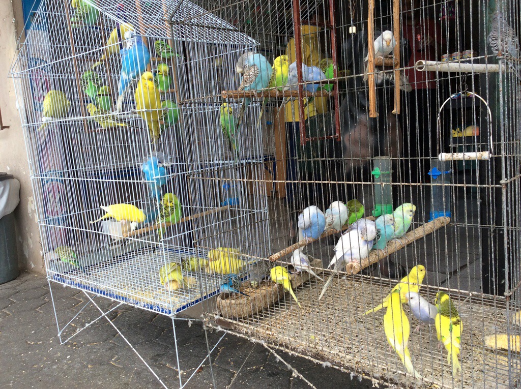 Here’s a picture of some budgies on sale at a songbird shop next to a Fortaleza road.