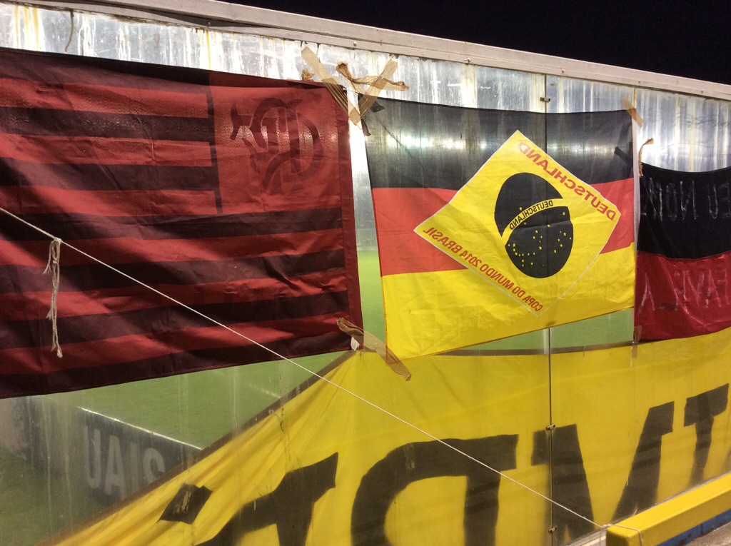 Douglas Coutinho put the visitors ahead on 20 minutes with Flamengo equalising on 35 as centre-half Samir soared high to head in driving Macae mad. A good atmosphere with samba beat and an entire terrace singing and dancing ensued for the rest of the first half.