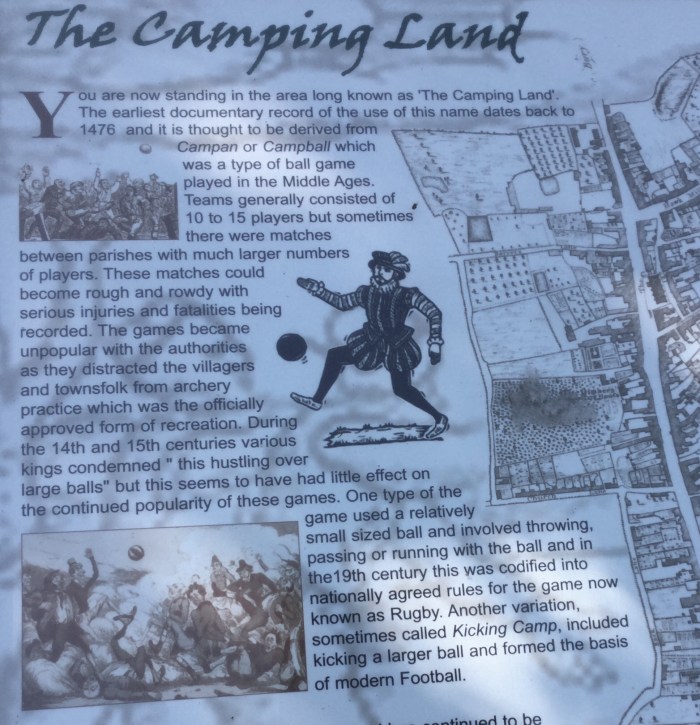 Here’s the village information board on its ball-playing pedigree – it even seems to claim that rugby was first played here.