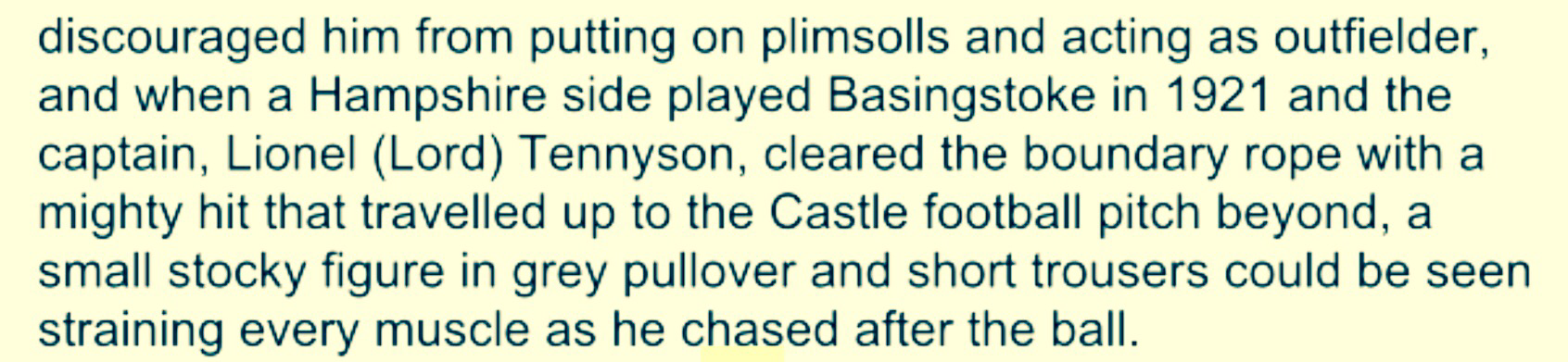 If there was something in the pavilion about the town’s most notable cricket figure John Arlott then I somehow missed it. He went to school next door and, aged seven, his biographer David Rayvern Allen records, club legend Bert Butler did not: