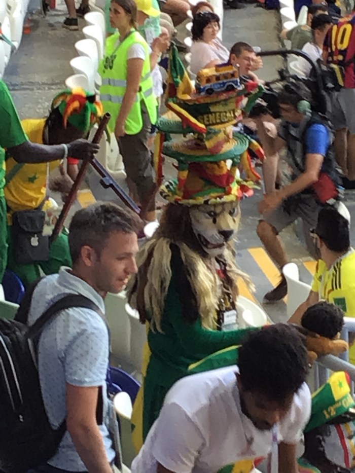 The third row is awash with fans taking pictures of the Senegallois serenaders. They try to oblige but prefer to spend half-time sitting down to conserve energy in the 35 degree heat.