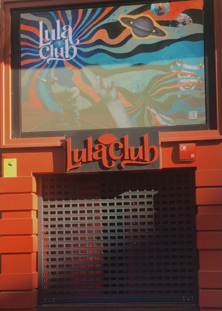 Lula didn’t bother publicising the event on its groovesome flashing thingy above the entrance (see pic). The day after its Saturday night disco wonderland event the show – Myd – was still being advertised on the LCD display unit above the entrance. At four minutes past 8, a club official noticed and went back inside to switch it all off.
