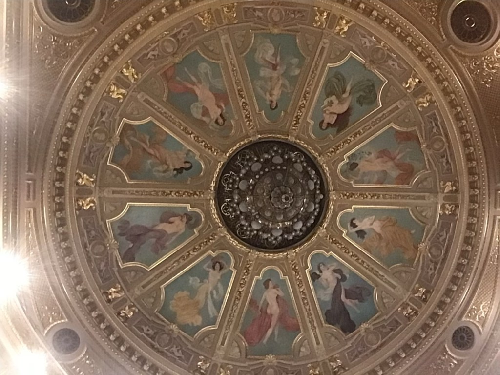 The point being that Ukraine celebrates itself in the harshest of circumstances. Above is the ceiling of the auditorium.