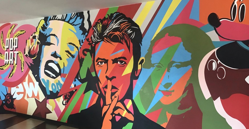 In a country that appears to be full of heroes, fitting to see Mr Bowie at breakfast. Also Marilyn, Mickey Mouse and, er, the Mona Lisa.