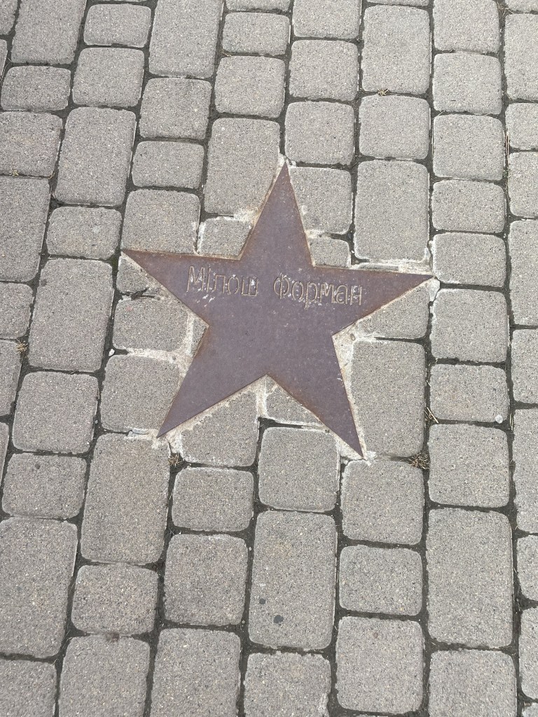 Likewise Czech film director Milos Forman who won an Oscar for One Flew over the Cuckoo’s Nest. Some glass Oscars are inset into a couple of the restaurant windows.