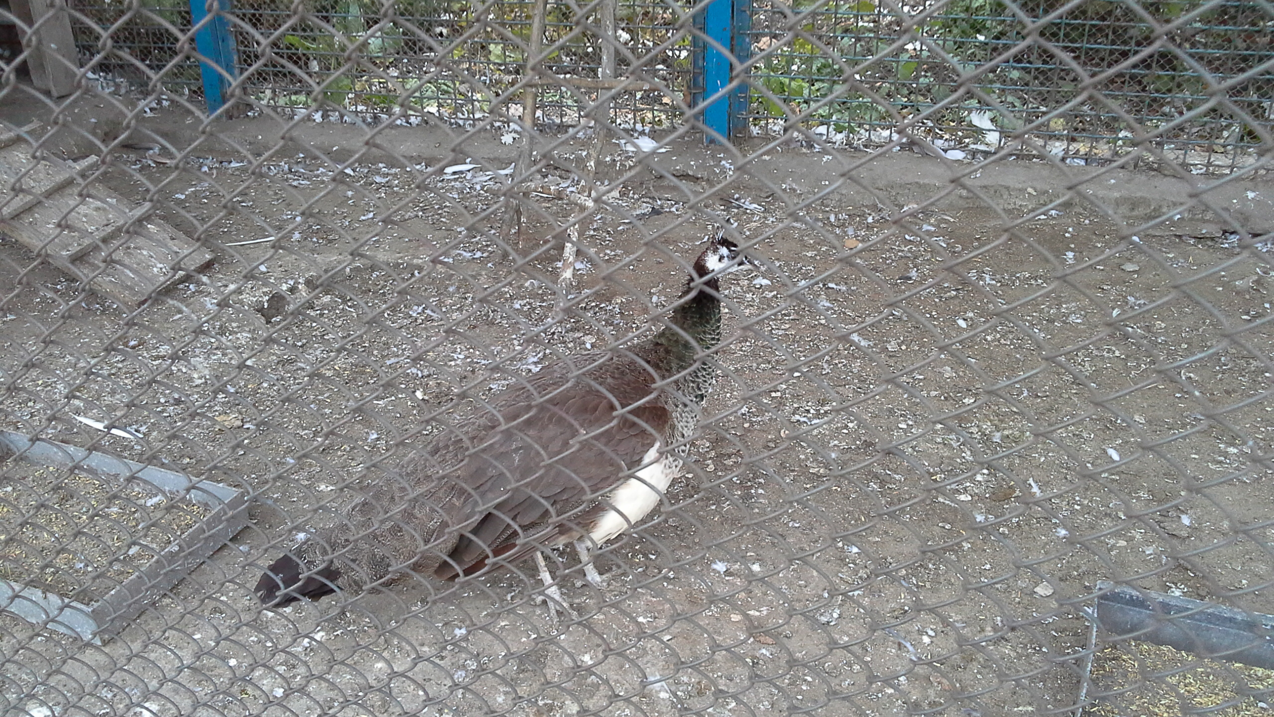 I started idly wondering how many fans have been pushed in the pond by japester mates in the past. The peahen below was probably caged for its own good.